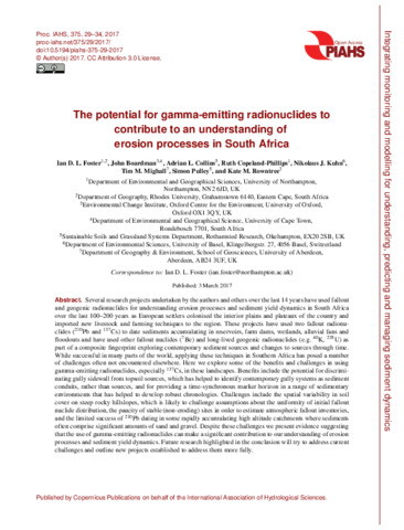 The potential for gamma-emitting radionuclides to contribute to an understanding of erosion processes in South Africa.
