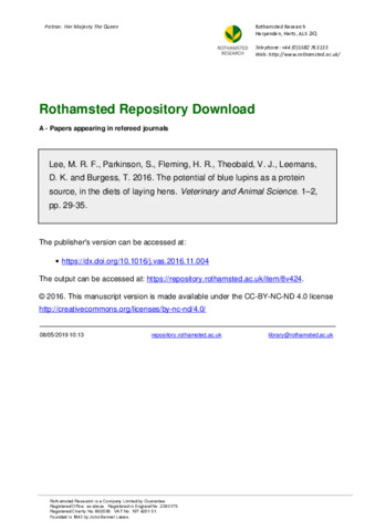 The potential of blue lupins as a protein source, in the diets of laying hens