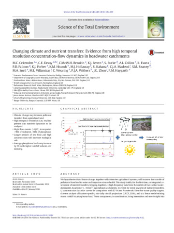 Changing climate and nutrient transfers: Evidence from high temporal resolution concentration-flow dynamics in headwater catchments.