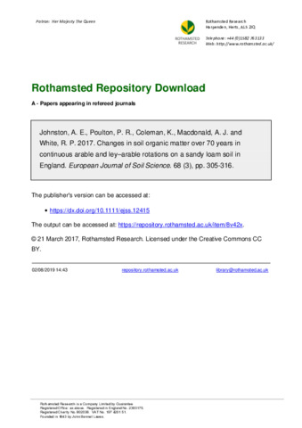 Changes in soil organic matter over 70 years in continuous arable and ley–arable rotations on a sandy loam soil in England