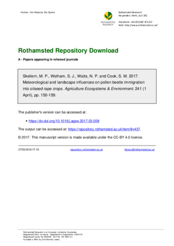 Meteorological and landscape influences on pollen beetle immigration into oilseed rape crops
