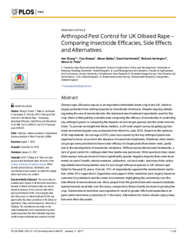 Arthropod pest control for UK oilseed rape – comparing insecticide efficacies, side effects and alternatives