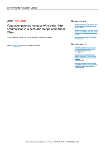 Vegetation patches increase wind-blown litter accumulation in a semi-arid steppe of northern China.