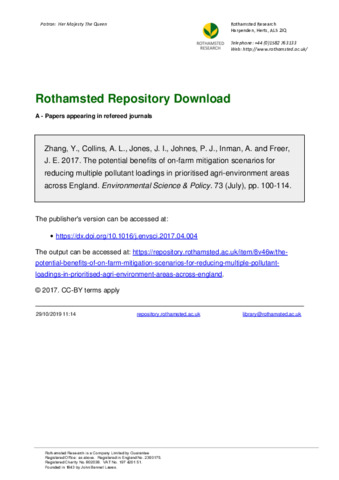| Keywords | diffuse pollution, mitigation, agri-environment, cost-benefits, uncertainty |
