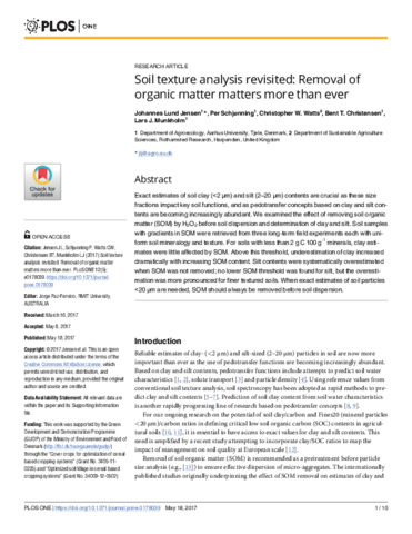 Soil texture analysis revisited: Removal of organic matter matters more than ever.