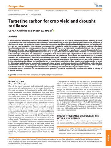Current methods of crop improvement are not keeping pace with projected increases in population growth. Breeding, focused around key traits of stem height and disease resistance, delivered the step‐change yield improvements of the green revolution of the 1960s. However, subsequently, yield increases through conventional breeding have been below the projected requirement of 2.4% per year required by 2050. Genetic modification (GM) mainly for herbicide tolerance and insect resistance has been transformational, akin to a second green revolution, although GM has yet to make major inroads into intrinsic yield processes themselves. Drought imposes the major restriction on crop yields globally but, as yet, has not benefited substantially from genetic improvement and still presents a major challenge to agriculture. Much still has to be learnt about the complex process of how drought limits yield and what should be targeted. Mechanisms of drought adaptation from the natural environment cannot be taken into crops without significant modification for the agricultural environment because mechanisms of drought tolerance are often in contrast with mechanisms of high productivity required in agriculture. However, through convergence of fundamental and translational science, it would appear that a mechanism of sucrose allocation in crops can be modified for both productivity and resilience to drought and other stresses. Recent publications show how this mechanism can be targeted by GM, natural variation and a new chemical approach. Here, with an emphasis on drought, we highlight how understanding fundamental science about how crops grow, develop and what limits their growth and yield can be combined with targeted genetic selection and pioneering chemical intervention technology for transformational yield improvements. © 2017 The Authors. Journal of The Science of Food and Agriculture published by John Wiley & Sons Ltd on behalf of Society of Chemical Industry.