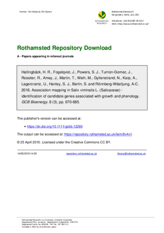 Association mapping in Salix viminalis L. (Salicaceae) - identification of candidate genes associated with growth and phenology