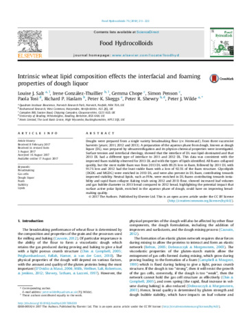 Intrinsic wheat lipid composition effects the interfacial and foaming properties of dough liquor.