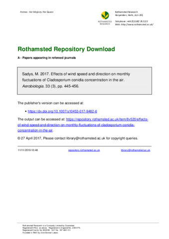 Effects of wind speed and direction on monthly fluctuations of Cladosporium conidia concentration in the air.