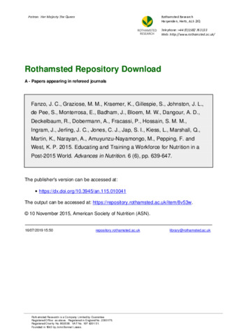 Educating and Training a Workforce for Nutrition in a Post-2015 World