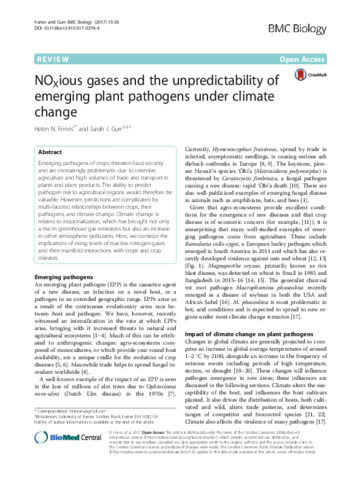 NOxious gases and the unpredictability of emerging plant pathogens under climate change.