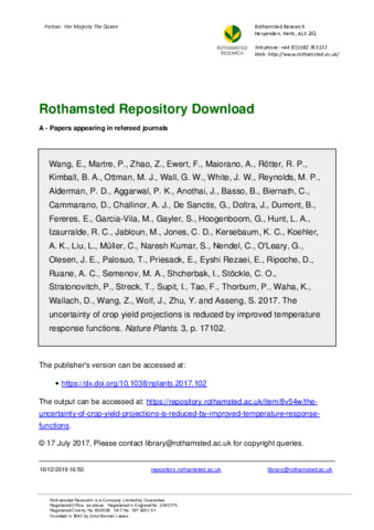 The uncertainty of crop yield projections is reduced by improved temperature response functions.