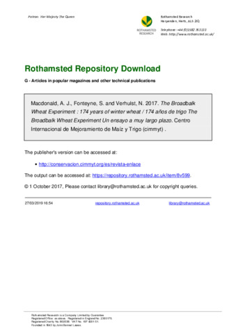 The Broadbalk Wheat Experiment : 174 years of winter wheat / 174 años de trigo The Broadbalk Wheat Experiment Un ensayo a muy largo plazo