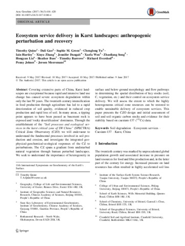 Ecosystem service delivery in Karst landscapes: anthropogenic perturbation and recovery