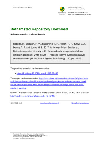 | Additional information | Times Cited: 0 Roberts, Rachel Jackson, Robert W. Mauchline, Tim H. Hirsch, Penny R. Shaw, Liz J. Doring, Thomas F. Jones, Hannah E. Hirsch, Penny/B-5135-2008 Hirsch, Penny/0000-0002-5909-1934 0 1873-0272 |