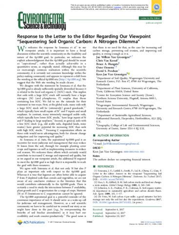 Response to the Letter to the Editor Regarding Our Viewpoint "Sequestering Soil Organic Carbon: A Nitrogen Dilemma"