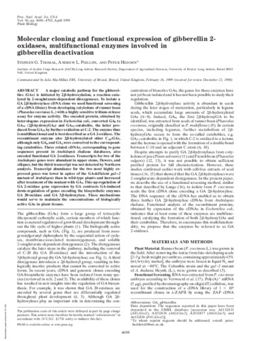 Molecular cloning and functional expression of gibberellin 2-oxidases, multifunctional enzymes involved in gibberellin deactivation