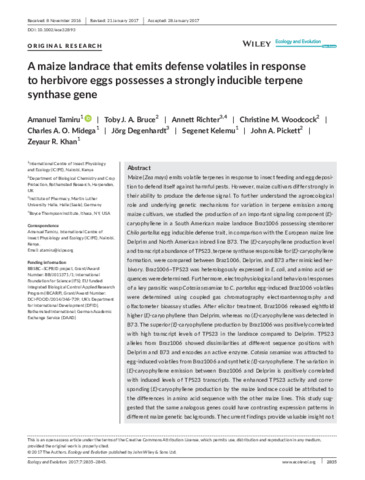 A maize landrace that emits defense volatiles in response to herbivore eggs possesses a strongly inducible terpene synthase gene