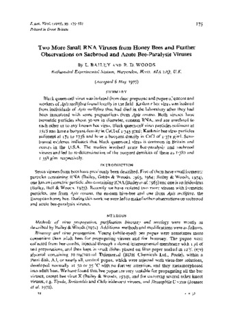 Two (2) more small RNA viruses from honey bees and further observations on sacbrood and acute bee-paralysis viruses.