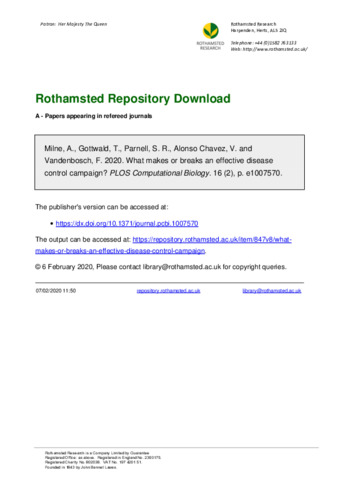 | Additional information | This research was funded by USDA, APHIS, Farm Bill Grant project 15-8130-0592-CA “Minimizing socio-political impacts to maximize costeffective control of emerging plant pests”. A. Milne and F. van den Bosch are supported by the Institute Strategic Programme Grants: Delivering Sustainable Systems BB/J/00426x/1) funded by Biotechnology and Biological Sciences Research Council(BBSRC), Achieving Sustainable Agricultural Systems (NEC05829 LTS-M ASSIST) funded by BBSRC and NERC and Smart Crop Protection |