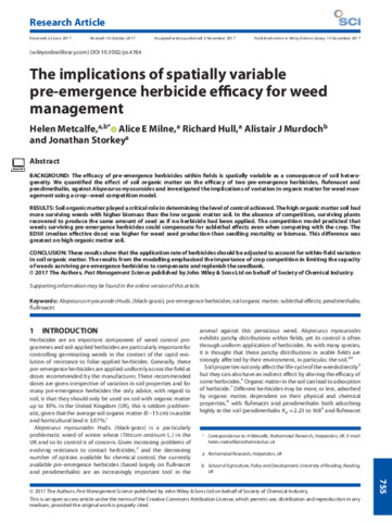 | Keywords | Alopecurus myosuroides Huds. (black-grass), Pre-emergence herbicides, Soil organic matter, Sub-lethal effects, Pendimethalin, Flufenacet |