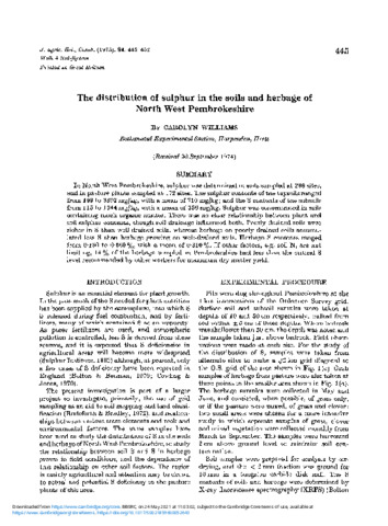 Distribution of sulfur in soils and herbage of North West Pembrokeshire.