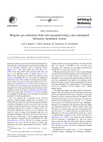 Biogenic gas emissions from soils measured using a new automated laboratory incubation system.