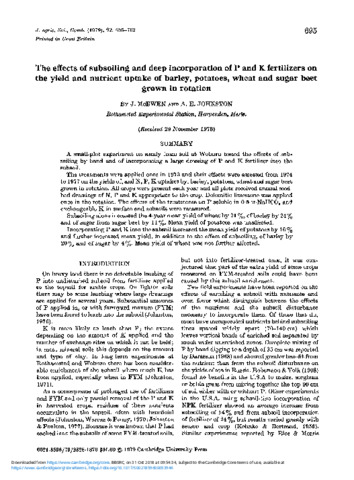 | Additional information | Times Cited: 23 Mcewen, j johnston, ae 26 Cambridge univ press New york MCEWEN, J (reprint author), ROTHAMSTED EXPTL STN,HARPENDEN AL5 2JQ,HERTFORDSHIRE,ENGLAND. |
