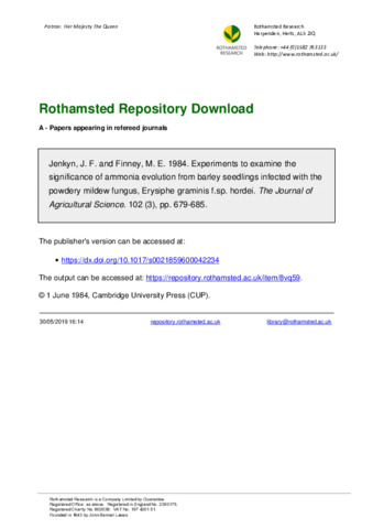 In the experiments using intact seedlings infection did, however, lead to greater concentrations of ammonium nitrogen in the senescing leaves and, in one experiment, the subsequent evolution of ammonia gas from these seedlings. Losses of nitrogen as ammonia gas from crops are probably small, but it is possible that under some circumstances they may represent a significant proportion of the otherwise unexplained nitrogen losses and hence be important in experiments which aim to study the nitrogen balance of crop-soil systems.