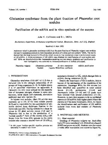 Glutamine-synthetase from the plant fraction of phaseolus root-nodules - purification of the messenger-rna and invitro synthesis of the enzyme.