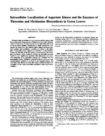 Wallsgrove, R. M., Lea, P. J. and Miflin, Benjamin J