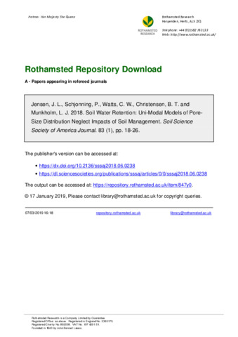 Soil Water Retention: Uni-Modal Models of Pore-Size Distribution Neglect Impacts of Soil Management
