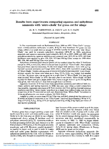 Results from experiments comparing aqueous and anhydrous ammonia with nitrochalk for grass cut for silage
