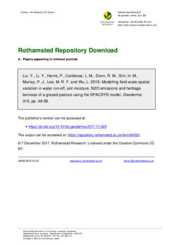 | Keywords | North Wyke Farm Platform, Spatial heterogeneity, Grid-to-grid simulation |