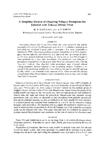 Simplified method of obtaining tobacco protoplasts for infection with tobacco mosaic-virus.