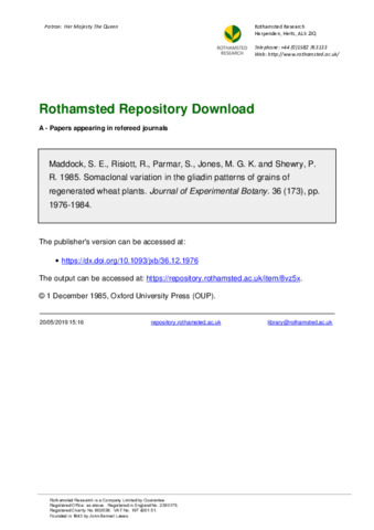 Journal of Experimental Botany, 36 (173).