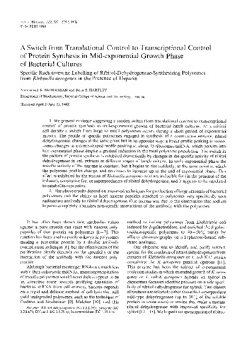 A switch from translational control to transcriptional control of protein-synthesis in mid-exponential growth-phase of bacterial cultures - specific radioimmune labeling of ribitol-dehydrogenase-synthesising polysomes from klebsiella-aerogenes in the presence of heparin.