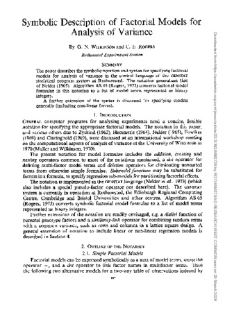 | Additional information | Times Cited: 36 Wilkinson, gn rogers, ce 36 Royal statistical soc London ROTHAMSTED EXPTL STN, HARPENDEN, ENGLAND. |