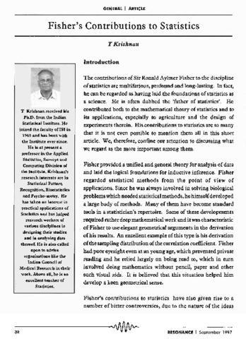 Fisher's contribution to statistics.
