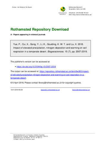 Impact of elevated precipitation, nitrogen deposition and warming on soil respiration in a temperate desert.
