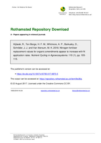 Nitrogen (N) supply from organic amendments [such as farmyard manure (FYM), slurries or crop residues] to crops is commonly expressed in the amendment’s Nitrogen Fertiliser Replacement Value (NFRV). Values for NFRV can be determined by comparison of crop yield or N uptake in amended plots against mineral fertiliser-only plots. NFRV is then defined as the amount of mineral fertiliser N saved when using organic amendment-N (kg/kg), while attaining the same crop yield. Factors known to affect NFRV are crop type cultivated, soil type, manuring history and method or time of application. We investigated whether long-term NFRV depends on N application rates. Using data from eight long term experiments in Europe, values of NFRV at low total N supply were compared with values of NFRV at high total N supply. Our findings show that FYM has a significant higher NFRV value at high total N supply than at low total N supply (1.12 vs. 0.53, p = 0.04). For the other amendment types investigated, NFRV was also higher at high total N supply than at low total N supply, but sample sizes were too small or variations too large to detect significant differences. Farmers in Europe usually operate at high rates of total N applied. If fertiliser supplements are based on NFRV of the manure estimated at low total N supply, N fertiliser requirements might be overestimated. This might lead to overuse of N, lower N use efficiency and larger losses of N to the environment.