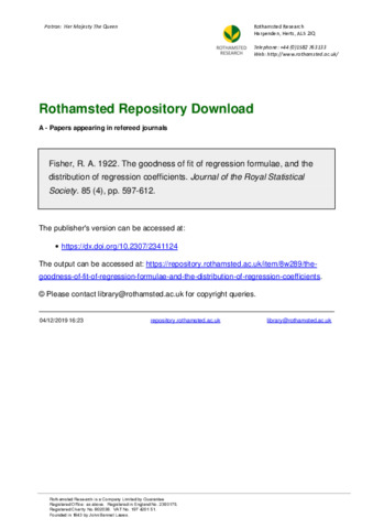 The goodness of fit of regression formulae, and the distribution of regression coefficients