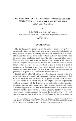 An analysis of the factors involved in the formation of a cluster of honeybees
