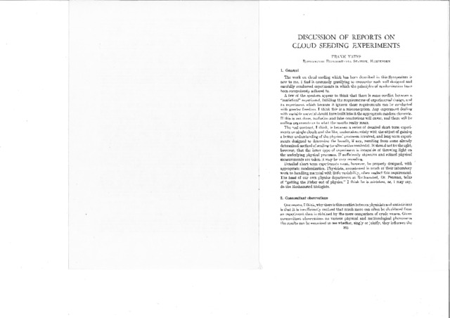 Discussion on reports on cloud seeding experiments