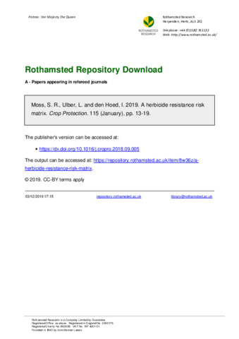 Herbicide resistance is of increasing concern, especially as there is a lack of new modes of action. An assessment of resistance risk has been a key part of the pesticide authorisation process in most European countries since the early 2000's. However, little guidance is provided on how to quantify these risks. The risk matrix described here presents a quantitative approach to the evaluation of the resistance risk posed by the use of herbicides. The inherent, ‘unmodified’ risk is first assessed by ranking herbicides and major target weed species on a scale from low to high resistance risk, based largely on published information. In practice, agronomic management practices (‘modifiers’) will reduce the risk and these are factored into the matrix. Modifiers can include management strategies relating to herbicide use as well as non-chemical methods of weed control. By assigning defined impact factors to possible agronomic modifiers, the overall resistance risk of a herbicide under defined use conditions can be quantified. The approach, although simple, appears robust and produces realistic assessments of the resistance risks associated with four contrasting test scenarios. The aim is to achieve a better harmonisation of herbicide resistance risk assessment across Europe. Although the matrix has a European legislative focus, the approach and principles are relevant in other parts of the world where the extensive use of herbicides is a relatively recent development, and where there is currently limited knowledge and expertise on herbicide resistance and the evaluation of resistance risks.