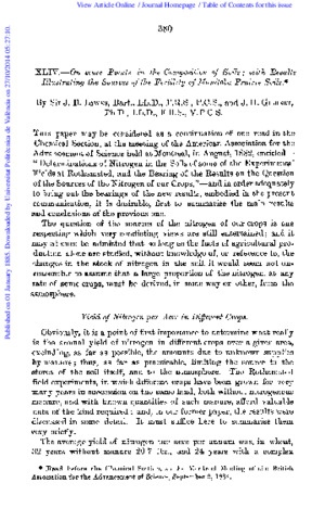 On some points in the composition of soils; with results illustrating the sources of the fertility of Manitoba prairie soils XLIV