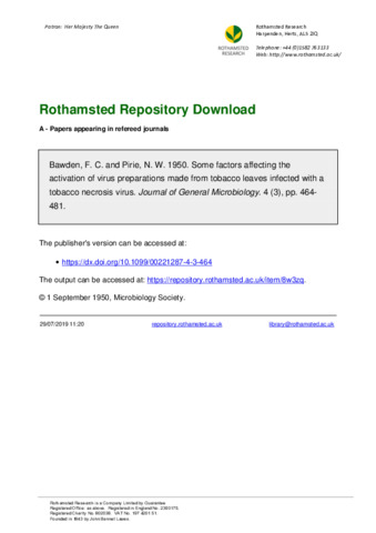 Some factors affecting the activation of virus preparations made from tobacco leaves infected with a tobacco necrosis virus