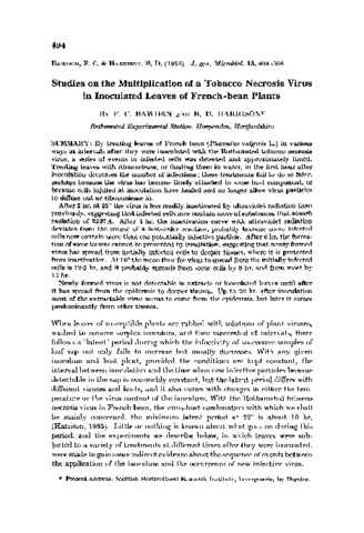 Studies on the multiplication of a tobacco necrosis virus in inoculated leaves in French-bean plants.