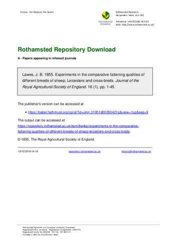 Experiments on the comparative fattening qualities of different breeds of sheep Leicesters and cross-breds.