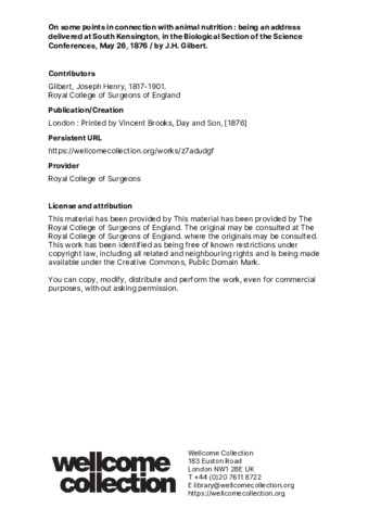 On some points in connection with animal nutrition. Being an address delivered at South Kensington in the biological section of the science conferences, 26 May 1876.